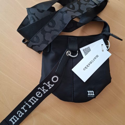 Uusi Marimekon Essential Bucket Solid olkalaukku unikkohihnalla. Mitat 19cm # 18,5cm. Tästä vaikka joululahjaksi ja laputkin vielä kiinni. Hinta 85€.