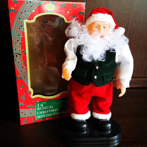 Hauska laulava ja tanssiva (twistaa) joulupukki. Sopii kaikenikäisille Joulua piristämään. Korkeus 50 cm. Aika harvinainen Vintage laite. Ollut lähinnä vitriinissä koristeena. Ikkunavalot kaupanpäälle.