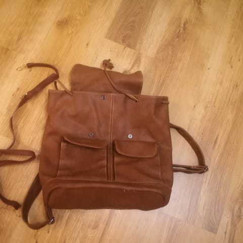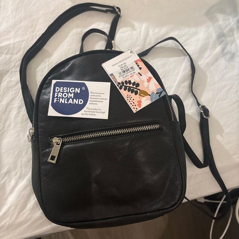 Korkeus x leveys n. 40 x 30. Tukevarakenteinen, ruotsissa valmistettu reppu magneettilukoilla. Yhdessä hihnassa halkeamaa (kuva), paikoin näkyy saumoissa jotain lankahapsua, kaikki tämä huomioitu hinnassa. Ostin tämän itse käytettynä ja huomasin aika lailla heti, että ei vastannutkaan kokonsa puolesta omia tarpeitani repulle, joten laitan eteenpäin vaikka tyylikäs onkin.