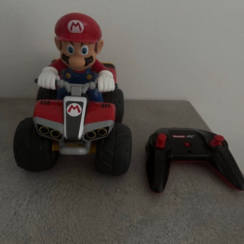 Carrera Mario Kart RC -auto, jossa 2,4 GHz taajuus ja LED-valaistus. Auto on Mario-hahmon mallin mukainen, sisältäen kehon kallistustoiminnon. Sopii radiokontrolloitavaksi leluksi.