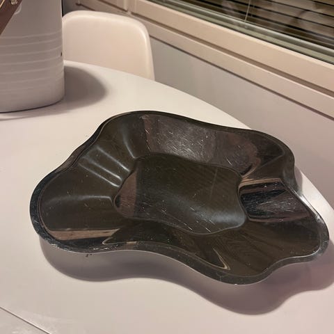 Ruostumatonta terästä, alkuperäispakkauksessa (sekin uudenveroinen). Puhdistusliina mukana.