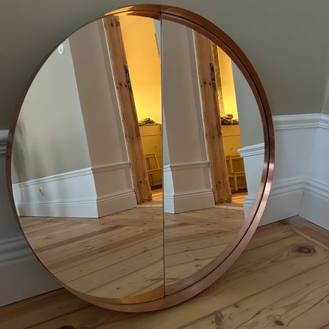 kuva-aihe maalaiselämästä sekä maisemista kiertää tämän raskaan, fasettihiotun peilin kehystä