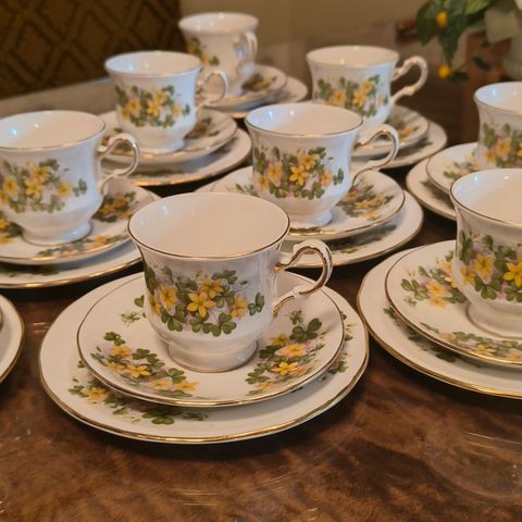 Queen Anne kahvikupit ja aluslautaset, 6 kpl