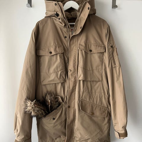Myydään käytetty Fjällräven Sarek Winter Jacket, väri tummanharmaa ja koko M. Koko on varsin reilu M, käytän yleensä L-koon vaatetusta mutta tähän M-kokoon mahtuu joku kevytuntsikka alle tarvittaessa. Referenssinä minulla rinnanympärys noin 105cm.