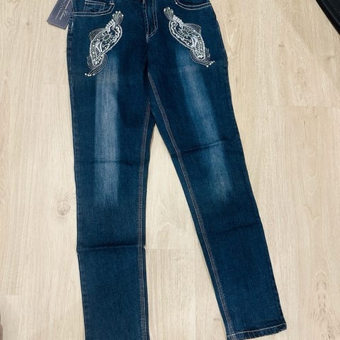 Perfect Jeans merkkisit farkut. Vähällä käytöllä ollut. Pientä kulumaan toisen takataskun vieressä. Kuluma näkyy kuvissa
