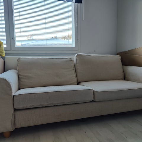 muuten hyvin istuttava sohva mutta kangas on huonossa kunnossa. Peite auttaa tähän.