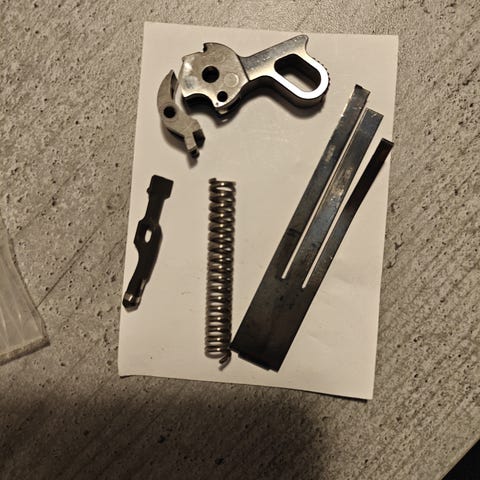 Huom. Ei sisällä pientä ruuvin alle tulevaa aluslevyä, joka lisättiin vasta myöhempään tuotantoon, ja originaali kevyt palautinjousi vaihdettu jäykempään teetettyyn jouseen, joka parantaa resettiä.