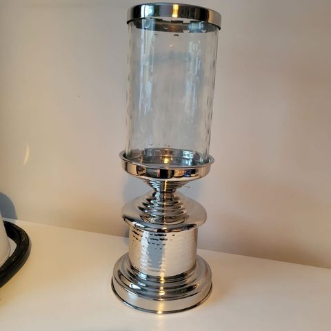 Näyttävä ja yksityiskohtainen lasinen valaisin, missä portaaton valotehon säätö. Valaisimen mitat noin korkeus 66 cm ja leveys 51 cm.