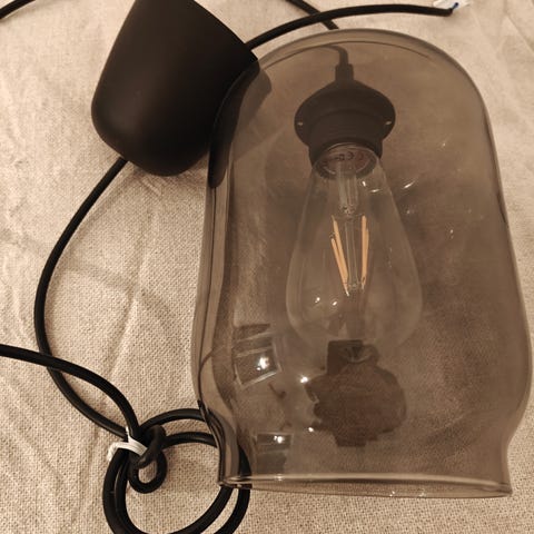 Kaksi tyylikästä tummaa lasia olevaa valaisint