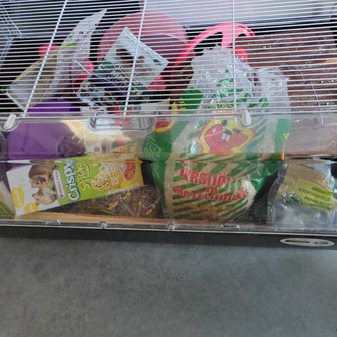Myydään hamsterin häkki. Mukaan purupussi ja vähän kylpyhiekkaa. Koko 78×48