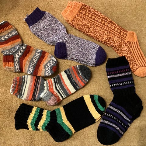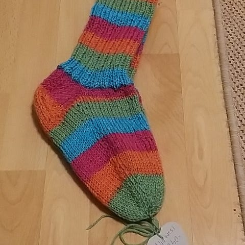 Bergen sukkalangasta, 75 % villaa, 25 % polyamidia, neulomani kettusukat. Koko 39.