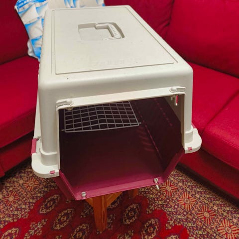Kissan kuljetuslaatikko. Kulkeutuu tarvittaessa Jyväskylän keskustaan.