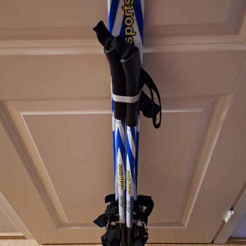 Kenkiin kiinnitettävät Peltosen ensisukset 110cm ja sauvat 70 cm.