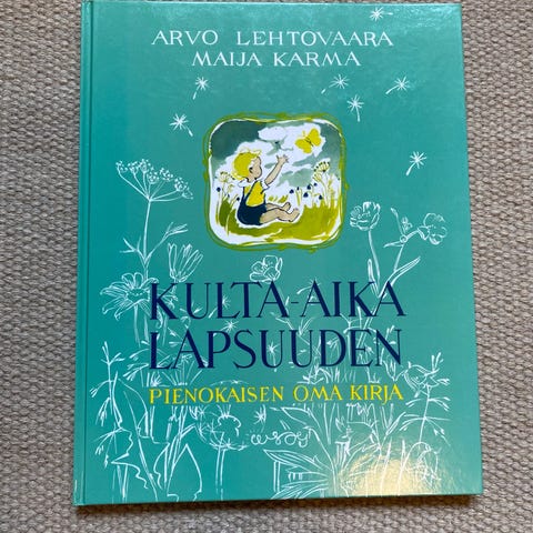 Kuvan mukainen vauvakirja. Etusivulla lapsen piirtämä sydän ja sen voi peittää vaikka tarralla.