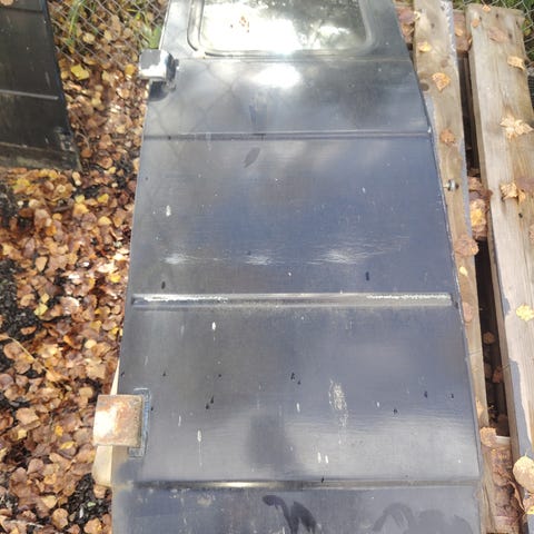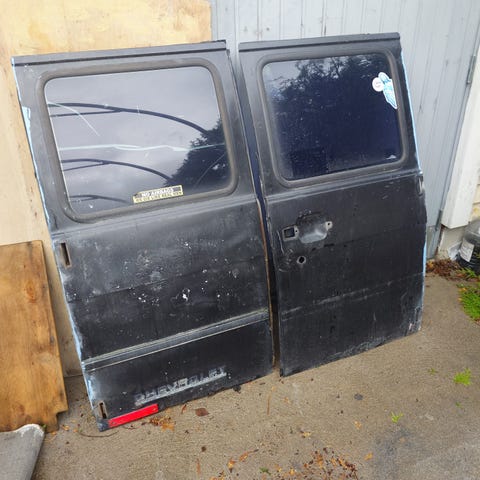 Takaovi pintapuolelta kelvollisen ehjä.Alta puhki sisäpuolelta.Sivuovi ehjä.Alla ruostetta sisäpuolella.Takaovi 40€ ja sivuovi 60€.