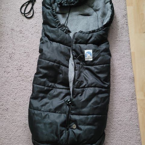 Hyväkuntoinen lämpöpussi turvakaukaloon. Vaaleanharmaa sisus ja tummanharmaa päällinen.