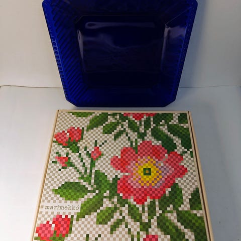 Marimekko Bökars -sininen tarjoilulautanen 27cm x 27cm
