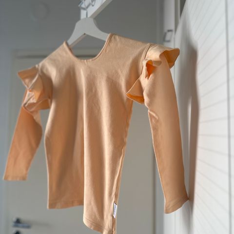Gugguu pitkähihainen, koko 128, väriltään violetti. Isot frillat. Valmistettu puuvillasta. Hyvässä kunnossa.