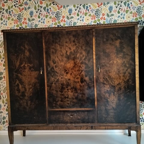 Myydään kaunis vanha kaappi, jossa on ajaton mid-century -henkinen ilme. Kaappi on kevyesti käyttökunnostettu: pinnat on hiottu ja lakattu, mutta tarkoituksella jätetty hieman käytönjälkiä tuomaan esiin sen ikää ja elettyä elämää. Näin kaapin alkuperäinen tunnelma ja luonne säilyvät.