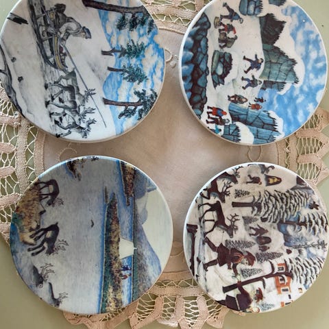 Pihajasmike- ja Pihasyreeni -seinälautaset, halkaisija n. 12 cm. Olivat tuotannossa 1990-luvulla, lautaset ovat alkuperäisissä pakkauksissaan. Eivät ole olleet seinällä. Yht. hinta 10 euroa. Mieluiten nouto.