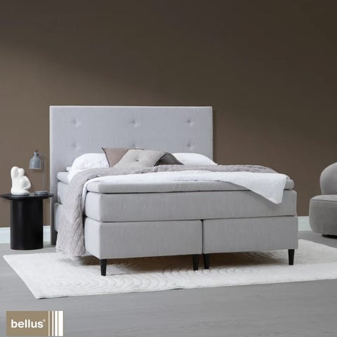 Myynnissä Bellus merkkinen jenkkisänky säädettävällä sängynpäädyllä. Verhoilun väri harmaa.
