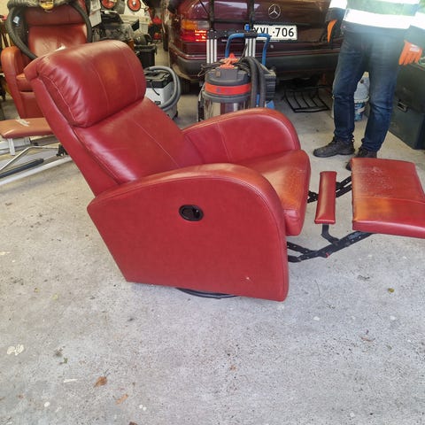 Pieni kulumisen jälki tuolissa muuten toimii ja on hyväkuntoinen