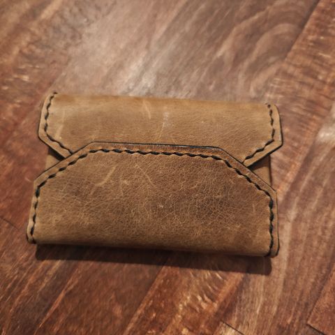 Käsityönä valmistetut korttilompakot. Aitoa nahkaa. Valmistettu yhdestä nahkanpalasta näyttävällä erikoisliitoksella. Käsin värjätyt. Sopivasti tilaa useammallekin kortille. Lähetyskulut 3€ postitse, lisätään hintaan. Lompakko, korttilompakko, kukkaro. 20€ kpl. (Sinimusta myyty!)