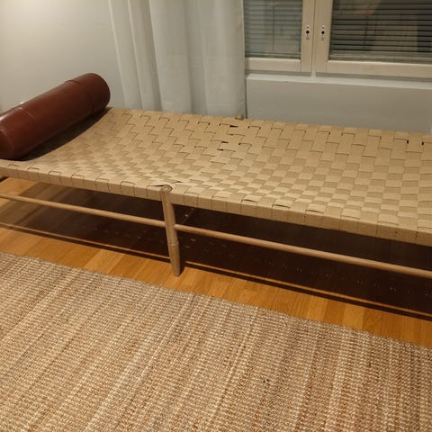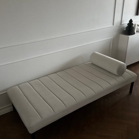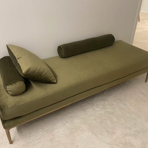 Stylish and elegant Carmel design daybed with linen upholstery. The cone shaped cushion and deep indentation give this piece a unique character.