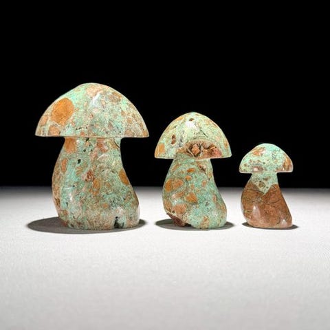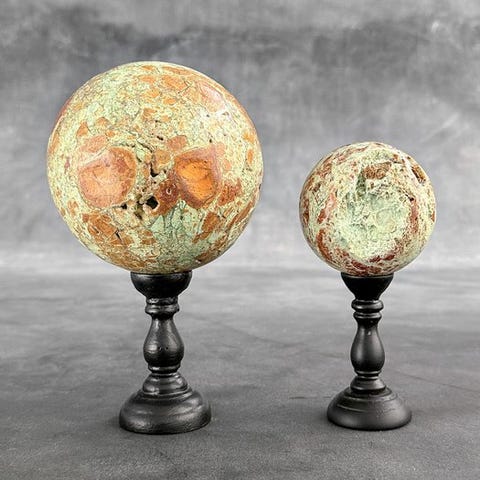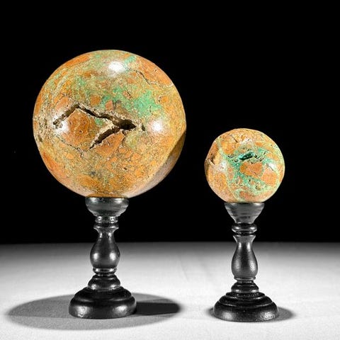 Kaunis kiillotettu kaareva kuu, valmistettu vihreästä smithsonite-kivestä, omalla räätälöidyllä jalustallaan.