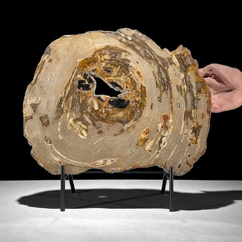 Upea Petrified Wood -sarja vapaamuotoisena ja pallona räätälöidyllä jalustalla.