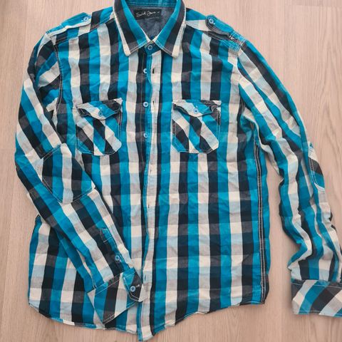 Miesten lyhythihainen ruutupaita, koko L. Paita on valmistettu kevyestä ja hengittävästä materiaalista, jossa on sinivalkoinen ruutukuvio. Sopii arkikäyttöön ja rentoihin tilaisuuksiin.