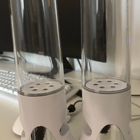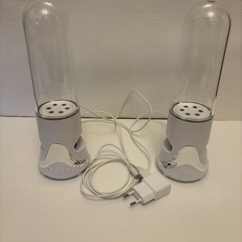 Toimivat kaijuttimet. Äänen mukaan menevät valot ja vesiefekti.