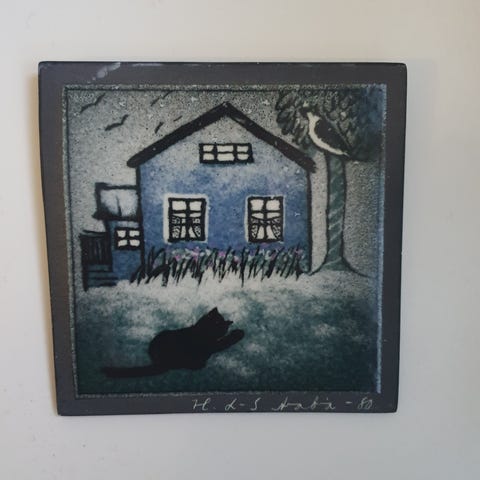Arabian seinälaatta Metsä, Heljä Liukko-Sundström, vuosi 1978. Mitat n. 20 cm x 20 cm. Takapuoli hieman tummunut mutta taulu on ehlä ja naarmuton.