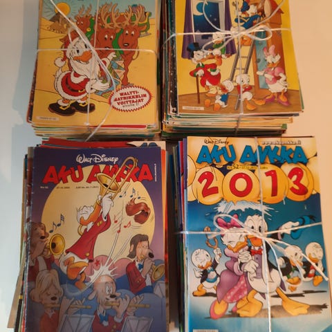 Annetaan Aku Ankka -lehtiä eri vuosilta. Eniten n. 2002-2003. Myös muutama uudempi vuodelta 2023 mukana sekä vanhempia. Joukossa saattaa olla myös huonokuntoisia mutta pääasiassa kunto OK ja lukukuntoinen.