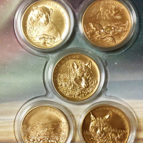 Eläinaiheisia keräilykolikoita muutamassa muutama hippu lapinkultaa. Monetan kautta ostettu.
