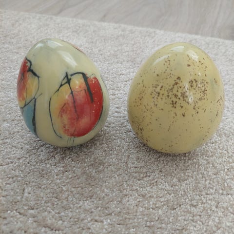 Yksittäin myytäessä muna 30e ja kulho 20e.