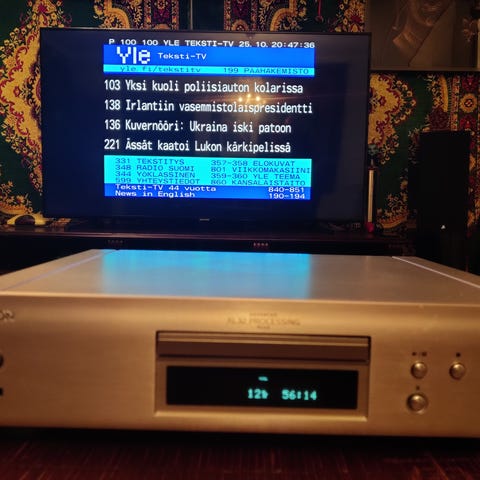 == HUOM: CD-asema ei toimi – lokero avautuu ja sulkeutuu normaalisti ja levy pyörii, mutta kuuluu suhiseva ääni eikä levyjä lueta. Todennäköisesti jumiutunut, koska en ole käyttänyt sitä kertaakaan 10 vuoden aikana. ==