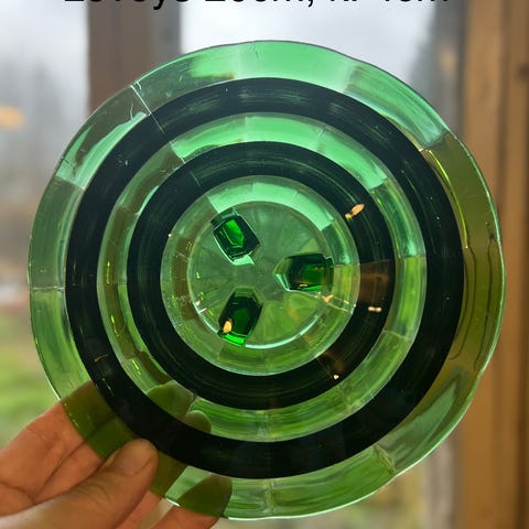 Myydään astetta harvinaisempi Aino Aallon Karhulan Lasille suunnittelema Bölgeblick-sarjan suurempi tarjoilulautanen, kaksi pientä kirkasta suorempaa Bölgeblick-sarjan lautasta sekä kolme Bölgeblick-sarjan tummempaa hiukan syvempää lautasta. Lautaset ovat Bölgeblick-sarjan alkupään tuotantoa paksuilla/hiotuilla pohjarenkailla sekä tekoprosessissa syntyneiden "virheiden" kanssa.