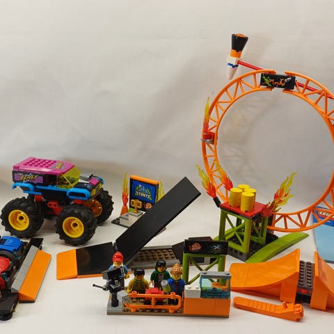 Lego city stunttishow'n areena 60295. Pari yksittäistä osaa puuttuu ja yksi hahmo. Ei vaikuta leikkeihin mutta huomioitu hinnassa. Ohjekirjoja (kunto tyydyttävä) mukaan.
