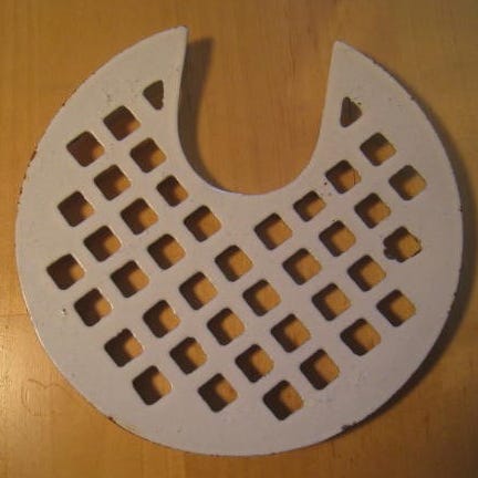 Vintage lattiakaivon kansi, emaloitua valurautaa, ikäisekseen siisti.
