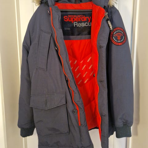 Vähän käytetty Superdry talvitakki. Ensimmäinen kuva vastaa enemmän oikeaa väriä.