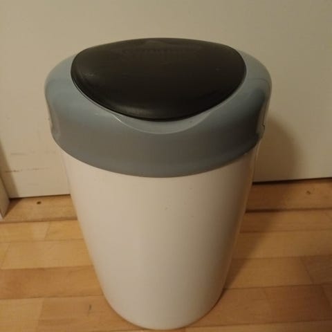 Käytetty tommee tippee vaipparoskis. Voidaan käyttää kaseteilla tai tavallisilla roskapusseilla.