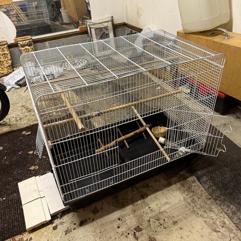 Melkein käyttämätön varahäkki, enemmän katto paikkaa ollut käytössä. 1 orsi 2 vedettävä pohjaa ja 2 ruokakuppia. Korkeus ilman leikkipaikka 128cm, leveys ja syvyys 45,5cm. Korkeus kokonaan 156cm