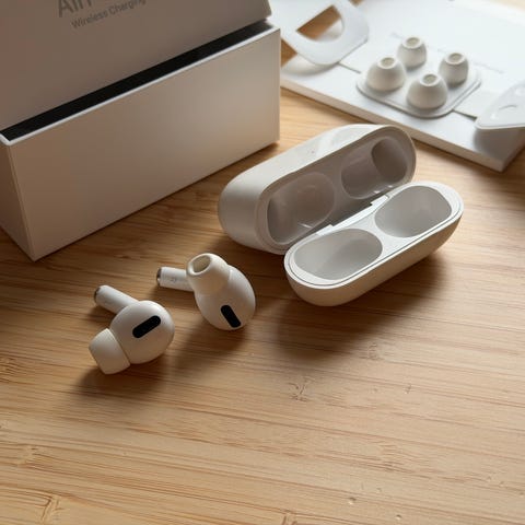 Apple AirPods Pro langattomat kuulokkeet. Ensimmäinen malli. Ovat olleet pitkään käytössä, mut toimii hyvin!