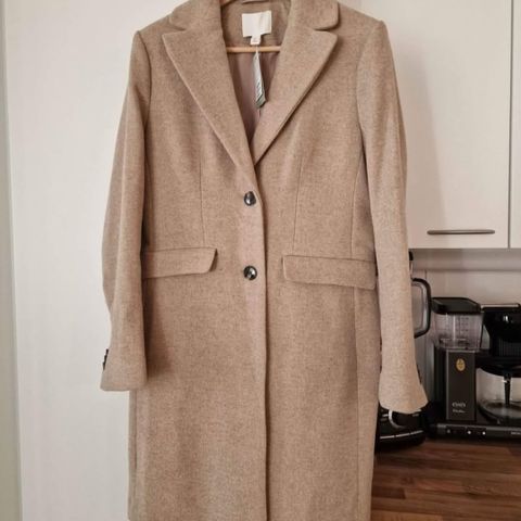 H&M Studio musta villakangastakki (80% villa, 20% polyamidi, sisävuori viskoosia). Koko 36, rento istuvuus. Taskut edessä, kaksirivinapitus.