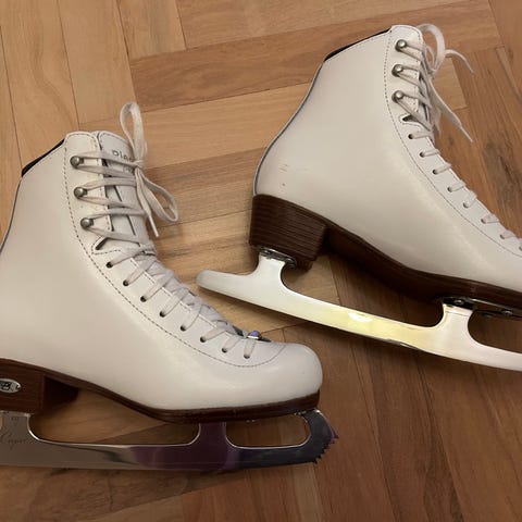 Riedell Diamond Junior 33 taitoluistimet Capri-terillä. Koko 3, lesti medium. Vastaa kengänkokoa 34. Pohjallinen 22,3 cm.