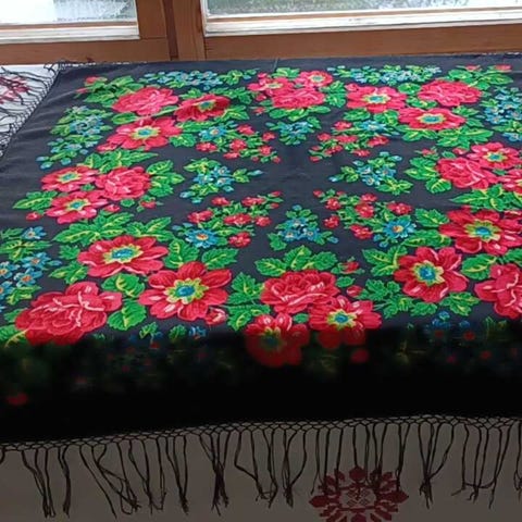 "Maatuskahuivi" 70x74cm, oletettavasti villaa?, hyvä kunto,