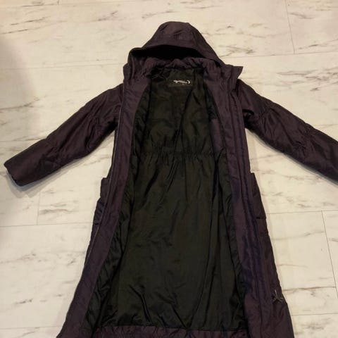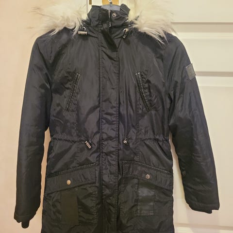 Hauskan värinen, todella lämmin takki, joka ollut yhden kauden ajan käytössä, ehkä pari kertaa, ja sitten jäi pieneksi, kun nuori venahti pituutta. Siist ja ehjä. Koko sopii noin 13-vuotiaalle, eli noin 160-senttiselle.