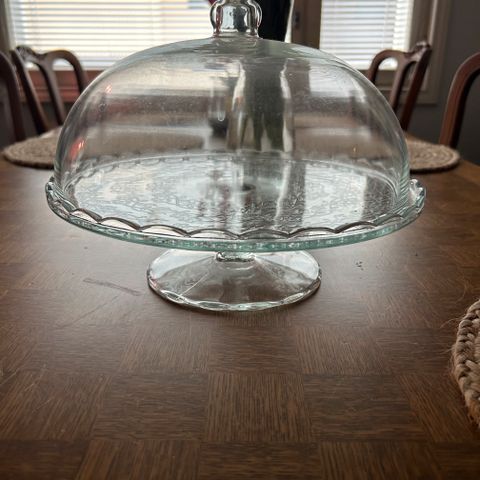 Pyörivä kakkulautanen. Lasia. Halkaisija 35 cm, korkeus n. 2 cm
