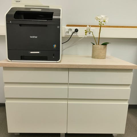 Tyylikäs moderni laatikosto, jossa on neljä vetolaatikkoa. Laatikostot ovat harmaita ja niissä on lukittavat pyörät, jotka helpottavat siirtämistä. Mukana tulee avaimet, jotka mahdollistavat kaikkien laatikoiden lukitsemisen. Laatikostot ovat hyvässä kunnossa, mutta niissä on pieniä naarmuja ja kulumia, jotka eivät vaikuta käyttöön. Pyörät toimivat jäykästi, avaimet ovat tallella.